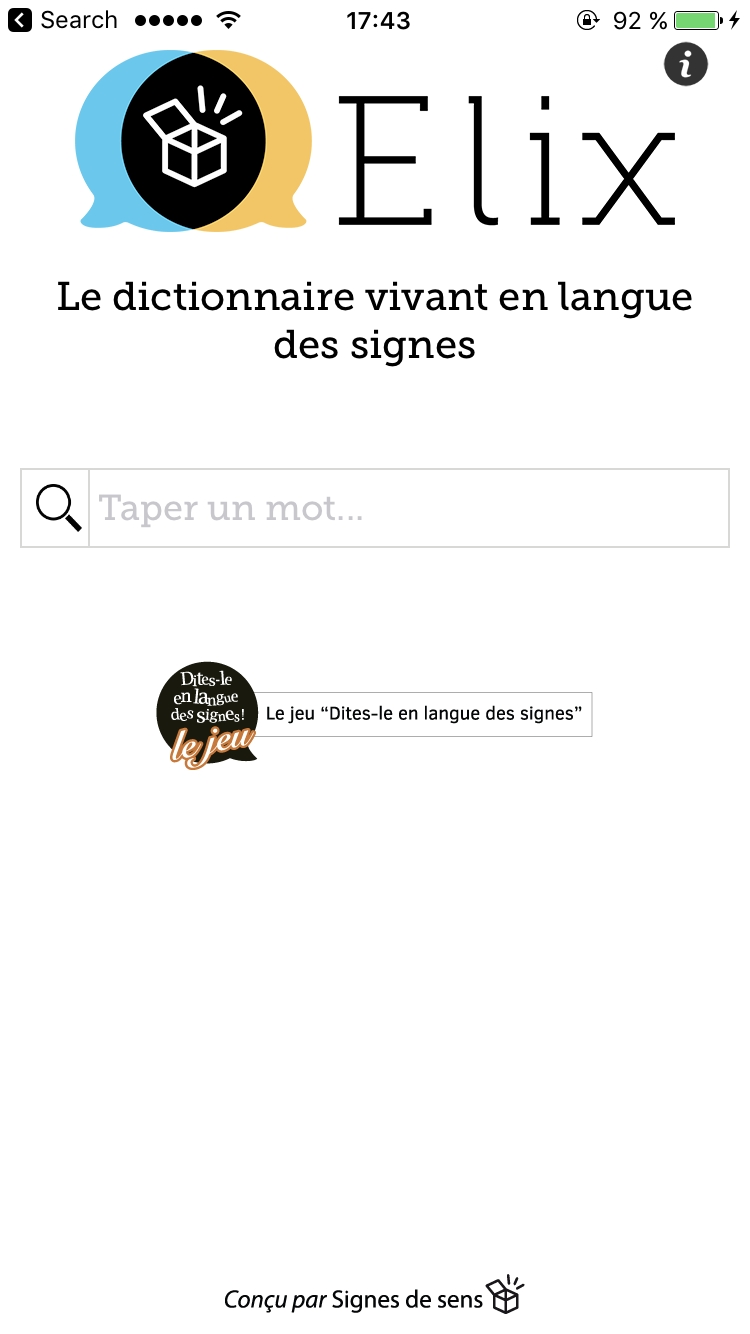 Dans la continuité du projet Elix, cofinancé par l’Union Européenne, l’association Signes de Sens nous a confié la réalisation de l’application pour iOS et Android. Il s’agit du plus grand dictionnaire LSF (langue des signes française) en ligne disponible en application mobile native.