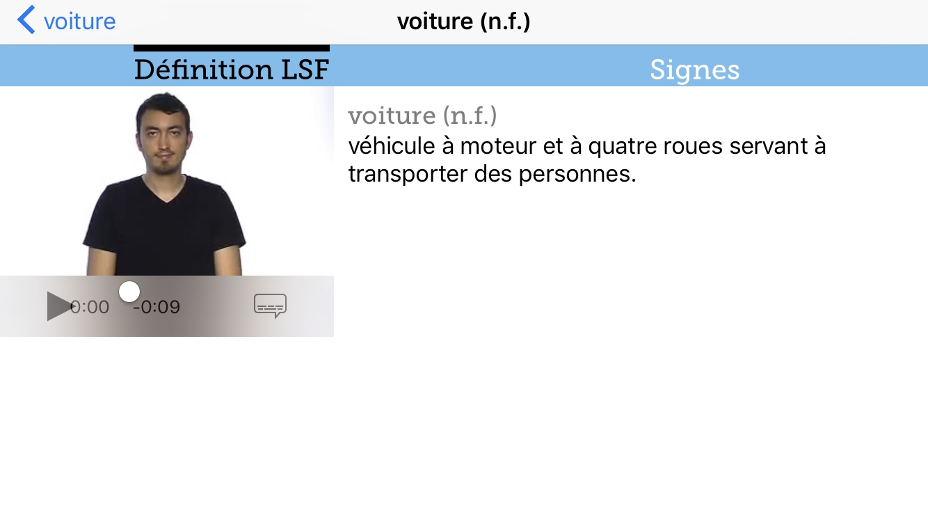 L’interface est très intuitive puisqu’il suffit de taper un mot, puis de choisir la définition dont on veut voir la traduction, qui s’affiche sous forme de streaming vidéo.