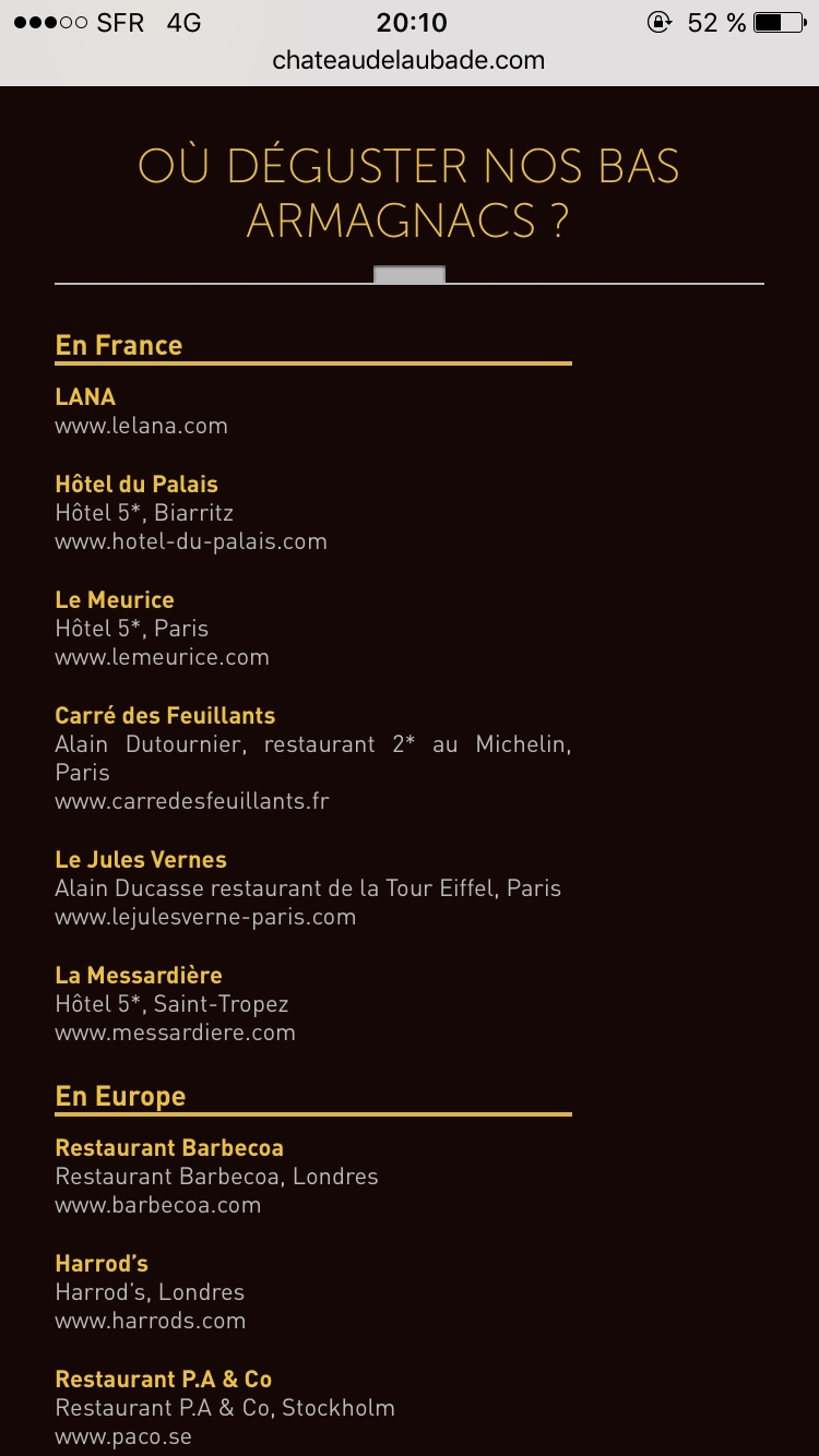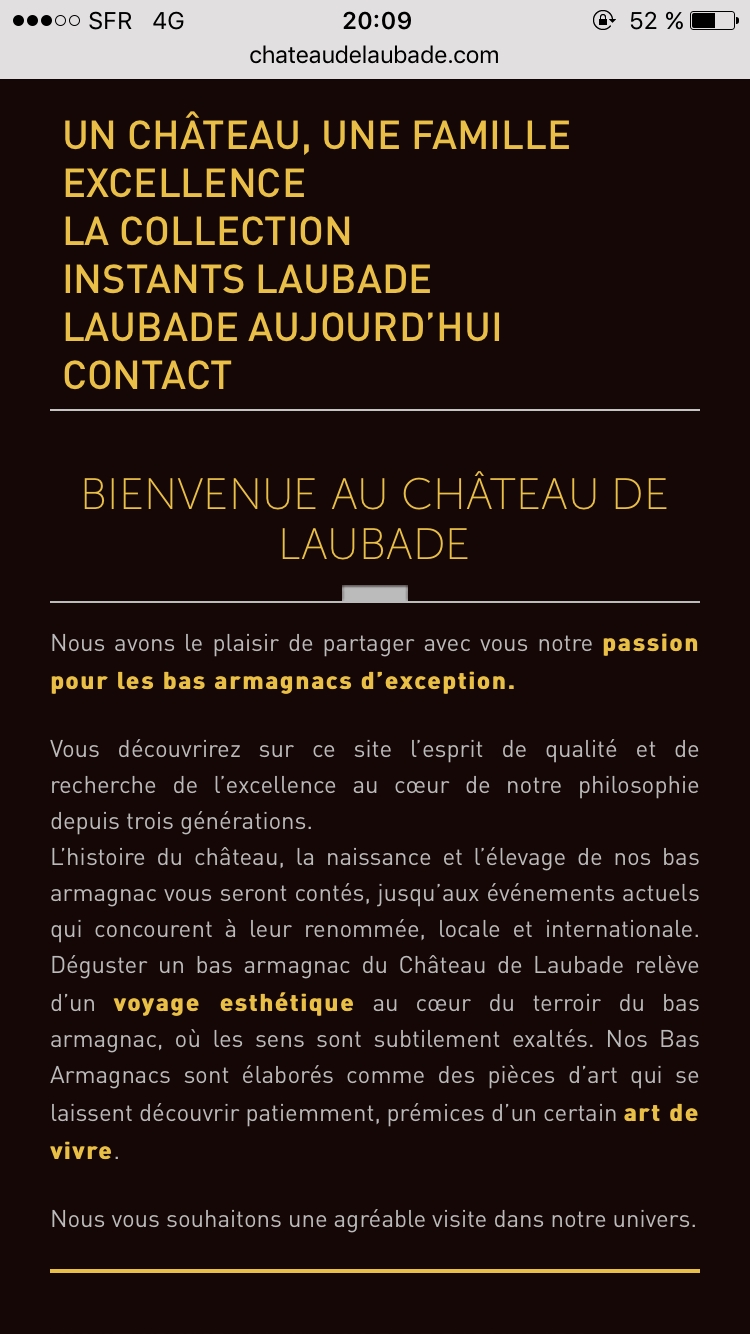 Le site regroupe de nombreuses informations quant à l’histoire de la propriété et de l’armagnac, sa gamme de vins ainsi que toutes les indications nécessaires pour que vous aussi, vous puissiez découvrir ce trésor ambré.
